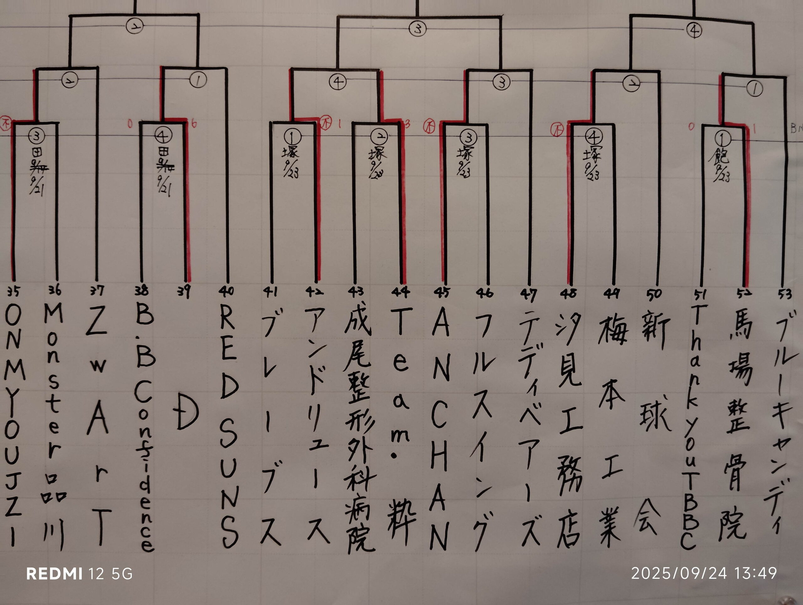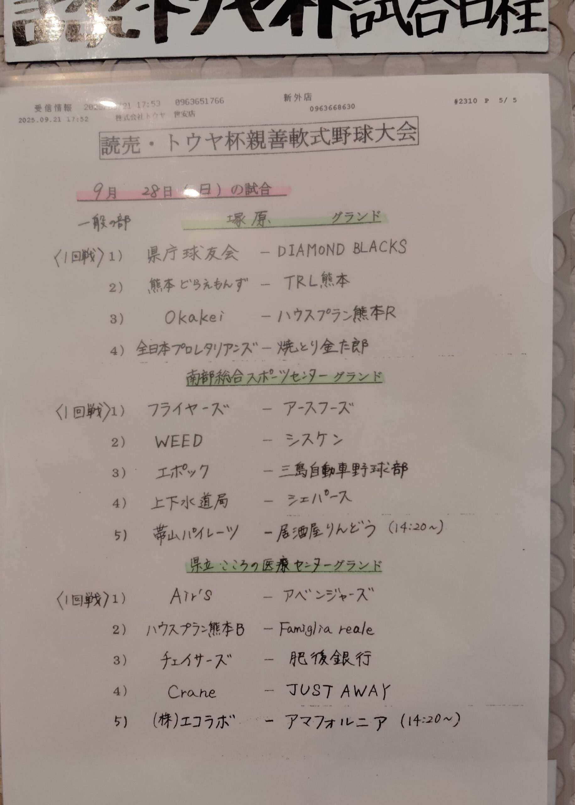 2025.09.25 第48回読売・トウヤ杯 9月21日と23日結果と28日予定 トウヤ杯 X Facebook はてブ Pocket LINE コピー 2025.09.25 28日(日)予定 トウヤ掲示板で確認してください + 21日と23日結果 21日予定だった雁回公園運動広場での4試合はグラウンドコンディション不良のため、中止となりましたので、28日の南部総合とこころの医療センターで予定してあります。 Post Views: 660