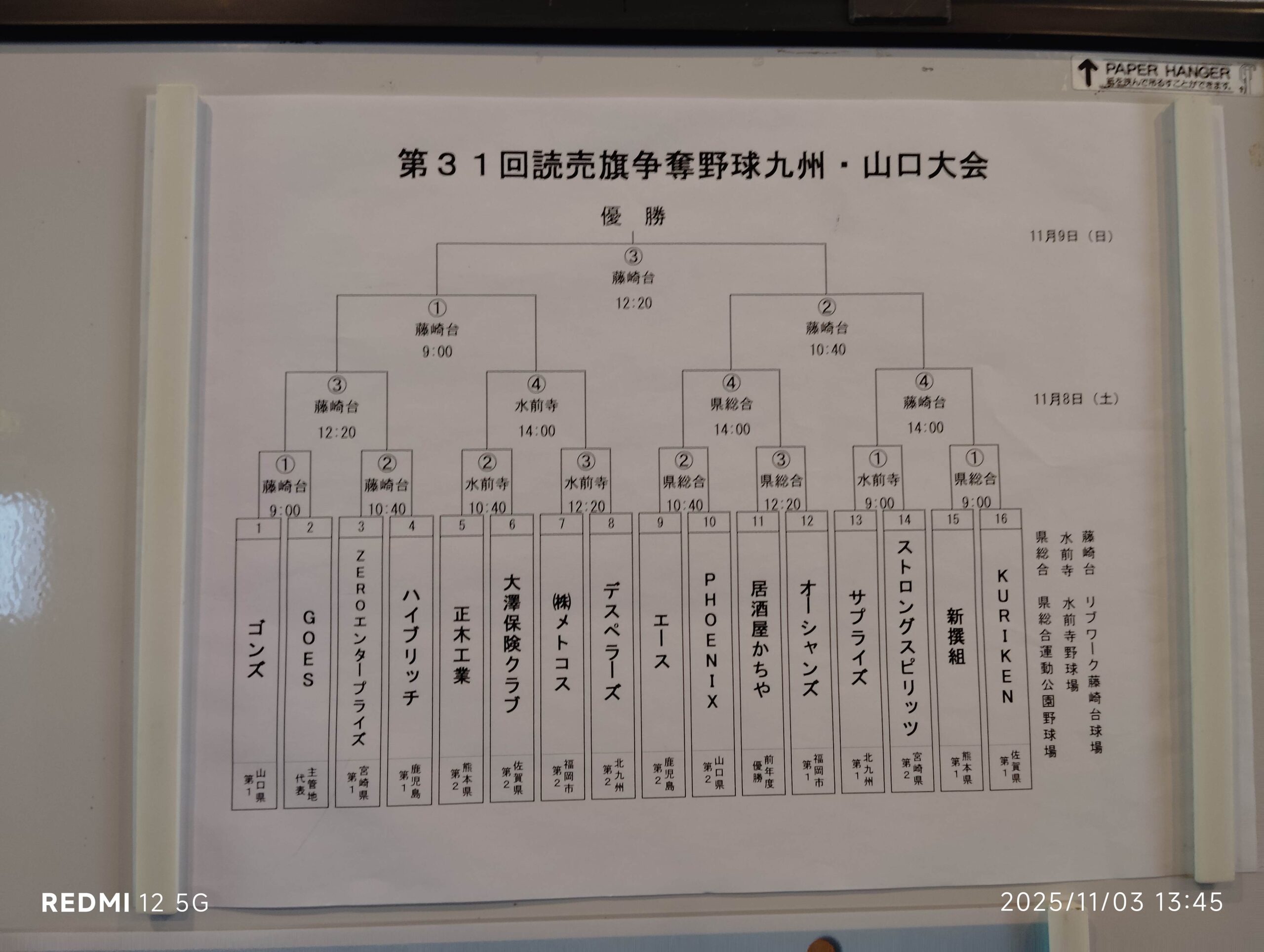 2025.11.7 第48回読売・トウヤ杯 11月2日結果 トウヤ杯 X Facebook はてブ Pocket LINE コピー 2025.11.07 11月2日結果 11月8日(土)、11月9日(日)は読売旗争奪野球九州・山口大会があり、熊本からはGOES、新撰組、正木工業の3チームが出場します。 Post Views: 27