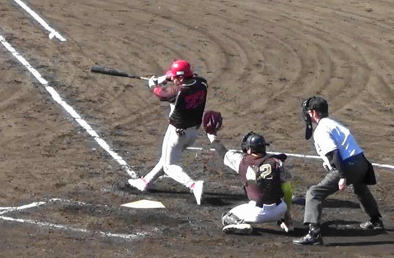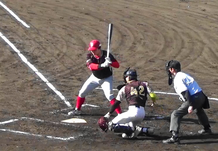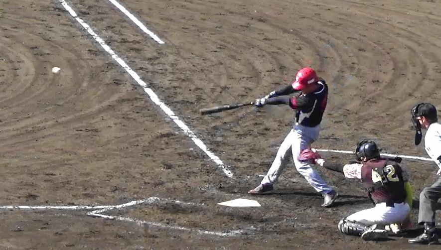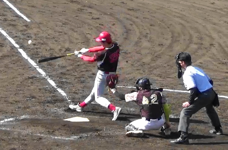 ㈱ヨシペンGOES 五回裏、この回トップの3番が左翼線二塁打を放つ